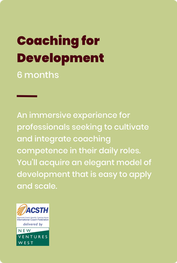 - Baseline competence in speaking and listening as a coach, making grounded assessments, and providing spontaneous coaching.